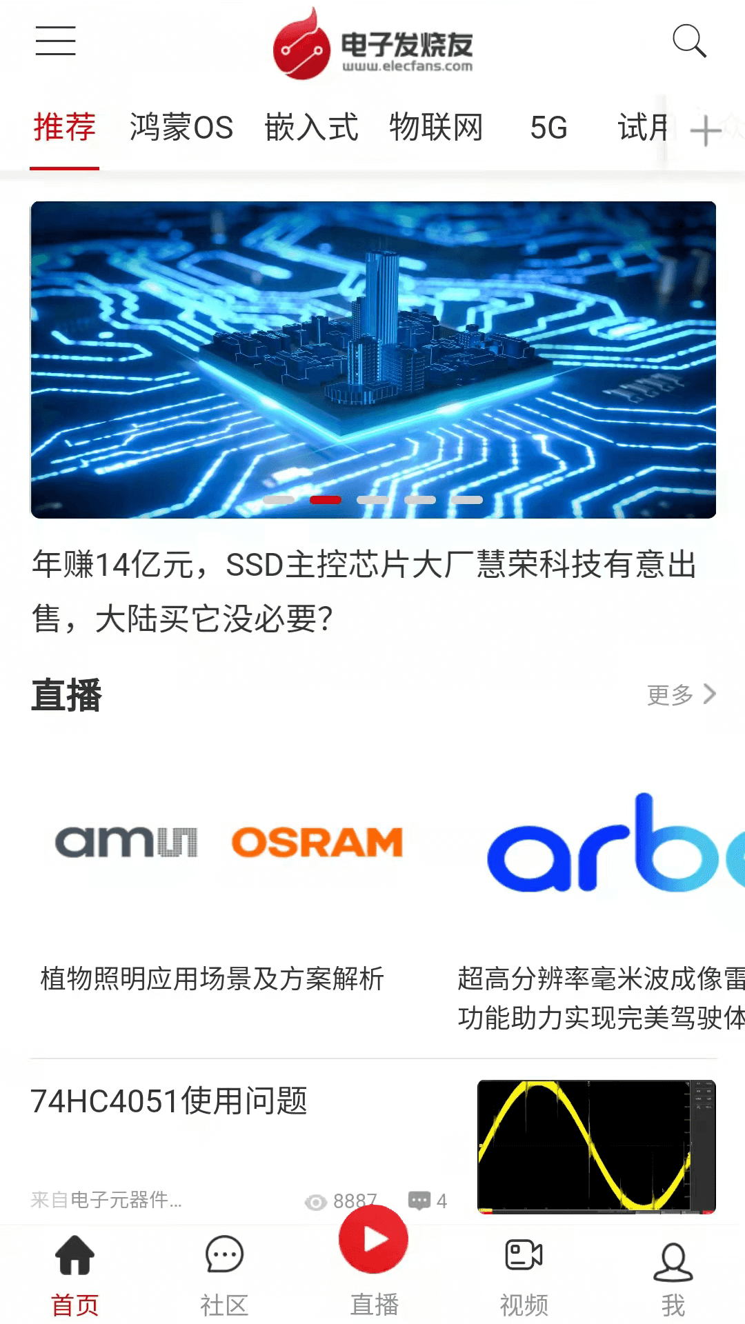 电子发烧友网 APP 是提供电子产业资讯、电子工具以及电子工程师问答社区。 主要功能有:电子新闻、电子工程师社区、开发板试用、pdf datasheet 资料查询、电子发烧友学院和直播等。 APP 目前主要提供四大块功能: