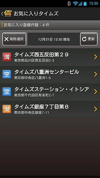 常に最新の満空情报を地図上にリアルタイムで表示。料金改定・新规开设にも完全対応! \\r