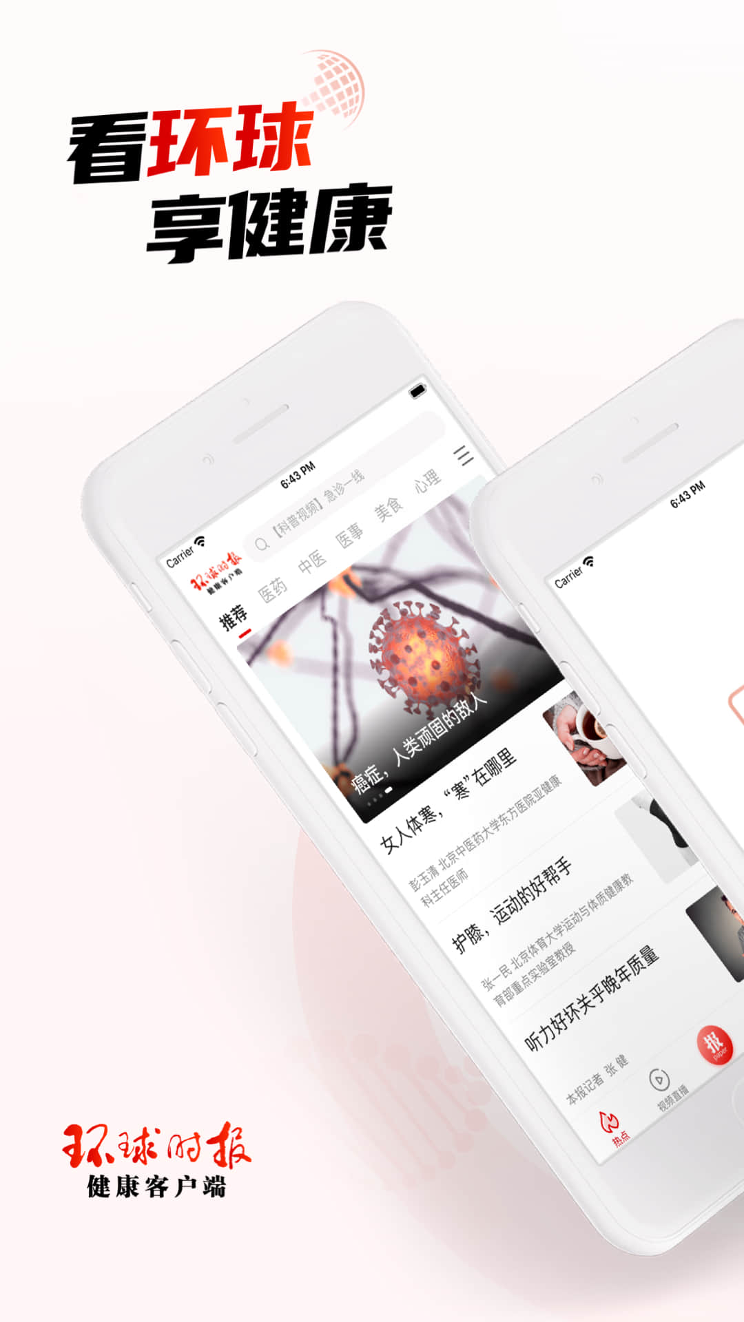 环球时报健康客户端拥有近 20 个垂直健康频道,涵盖医药、海外、养老、生活、心理等领域,以及电子报、视频直播等特色功能版块。客户端信息流集纳文字、图片、图集、视频、音频、动画、轻应用、动新闻等全媒体形态的数字产品。同时支持 Android 及 IOS 系统。\\r