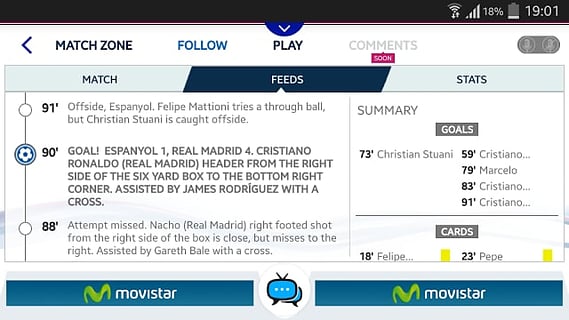 • Live Radio during the match in two languages: English and Spanish.\\r