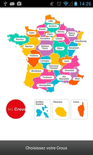 Menus des RU, logements, itinéraires, géolocalisation, services du Crous, contacts, actus (dates culturelles...), horaires... \\r