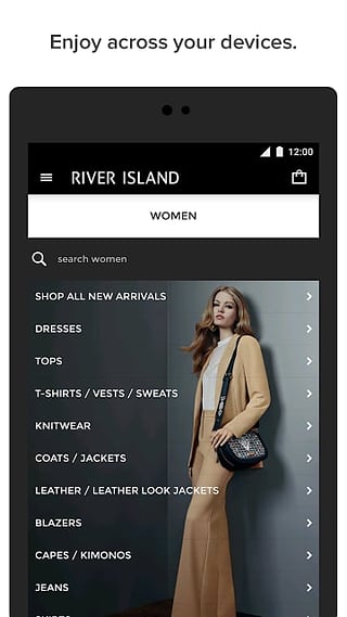 You can now get your River Island fix on the go with our new Android app. Whether you want to shop on the move, view our trends or check in to your local River Island store, it’s all available at the touch of a button. With new products arriving online daily, you can be the first to shop Just Arrived wherever you are, and share what you\'ve bought with your friends. You can also check stock in your nearest River Island store to avoid disappointment on your next shopping trip. \\r