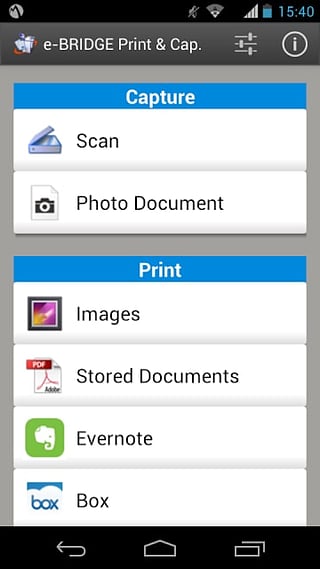 e-BRIDGE Print & Capture 应用程序实现了通过东芝 e-STUDIO 多功能数码复印机来打印输出和扫描 Andriod 设备上的文件。 \\r