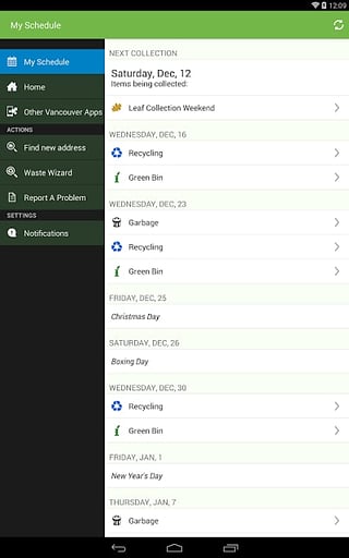 Garbage, Green Bin and Recycling collection schedules and reminders for City of Vancouver. View your upcoming collection schedule, and receive weekly collection reminders within this app. \\r