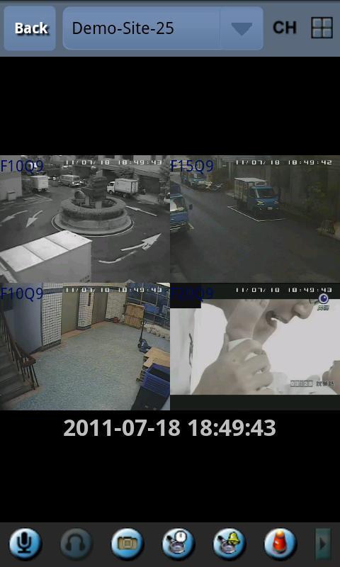 The TapCMS for Android is designed for use with DVRs. With state-of-the-art technology, virtually unlimited number of DVRs can be monitored and controlled.The main features are:. Remote monitoring and control for virtually unlimited number of DVRs,. H.264 decode capability,. Two-way audio,. Alarm input monitoring and alarm output control,. PTZ control,. 1/4/9/16 live/playback display formats,. Playback search by time or event,. Versatile playback operations,. Log display,. Snapshot video, and. Password to access DVRs.