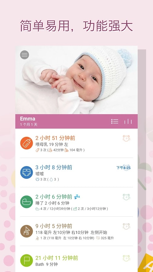 “宝宝生活记录”的丰富功能均能方便快速地实现。让您记录、查看、编辑等操作能通过最简单的步骤完成。