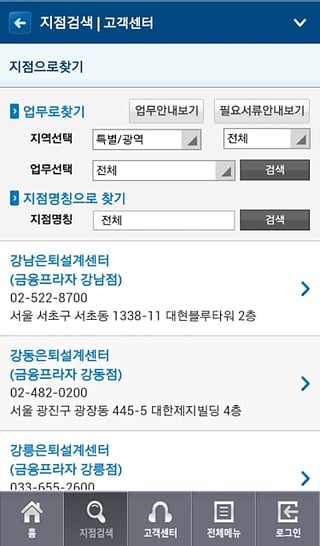 또한 지점검색, 필요서류 안내, F&Q 등의 메뉴 등을 이용하여 \\r