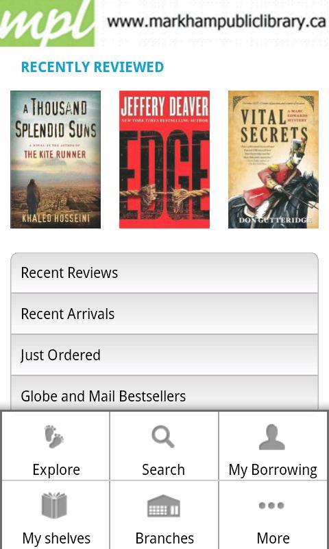 Keep a library in your pocket! MPL Mobile makes it easy to find and discover titles, manage your account, and get the library branch information you need.Features:• quickly search MPL's collection• get details on items in the collection including descriptions and community reviews • check a title’s availability – even map the locations where your title is available now • place holds • browse bestsellers, new titles, and recent reviews • download digital books, audiobooks, and movies • manage your account: check to see if your holds are available, cancel holds renew titles, or see the due date foritems you have checked out • keep track of your reading interests: rate a title or add a title to your ‘For Later’ list • check branch hours and get directions to the nearest branch of the Markham Public Library