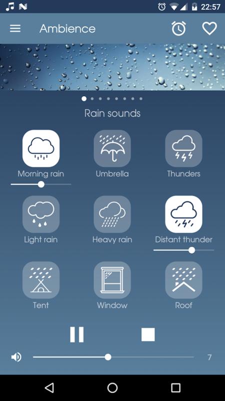 Ambience it\'s a mixer of relaxing sounds. You can mix many nature sounds, music and oriental sounds in order to obtain your ideal relaxed ambience based on your mood.