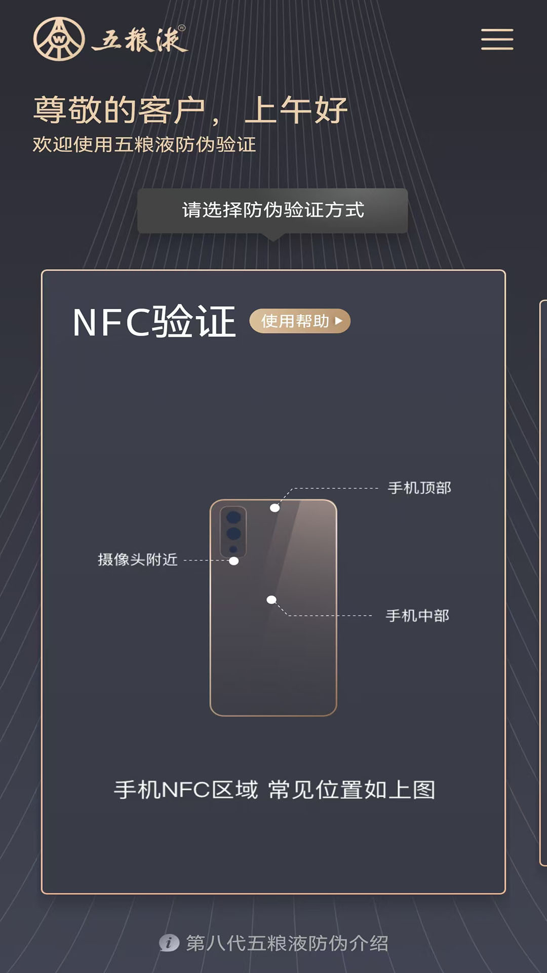 “五粮液防伪”是一款基于近场通信(NFC)技术的多功能智能手机防伪应用,为广大五粮液消费者提供了快捷、准确、可靠的防伪查询手段,是消费者查验高档五粮液产品的首选应用。目前只有支持 NFC 功能的智能手机才能使用全新一代 NFC 防伪查询功能。\\r