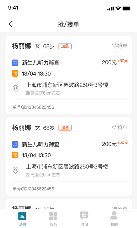 2、 订单接受,护士确认服务可提供后,确认接受服务订单。