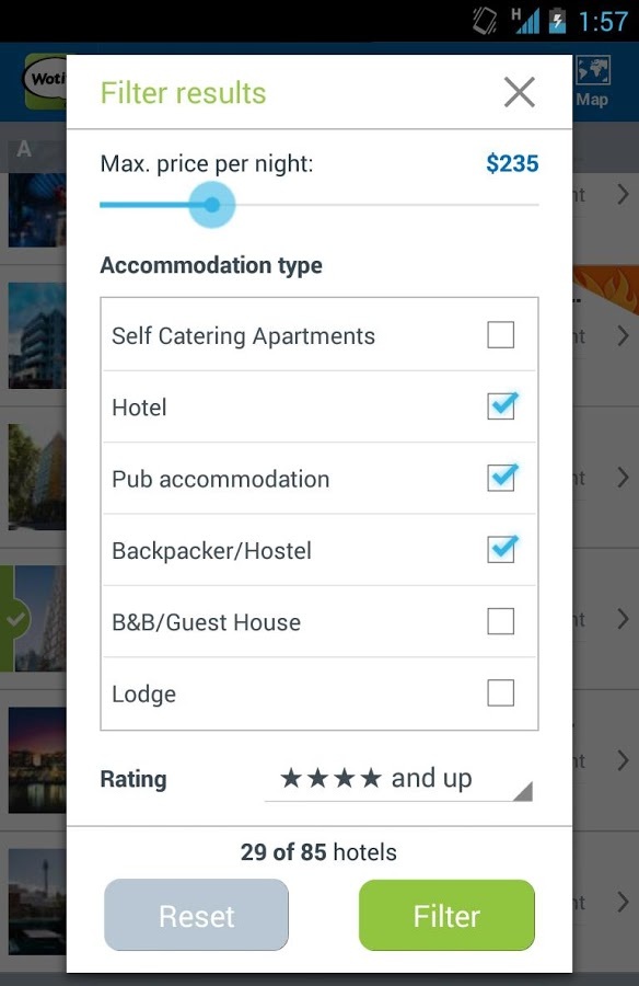 Wotif you could book a great deal on the go?Wotif.com’s app for Android is now available so wherever you are, you’re now only a few taps away from finding and booking our best accommodation deals. Wot can you do with the FREE Wotif.com Android app?• Search and book accommodation in more than 67 countries around the world• Find hotels ‘near me’, near an address or near a landmark• Save your favourite accommodation and compare rates using the Shortlist• Score a handpicked deal with access to special mobile promotions• Compare hotel deals in one, easy to scroll list or view them on a detailed map• Filter and sort your search by number of guests, price, star rating, accommodation type or hotel name• See rates in your local currency• Check out large photos of hotels with our easy to use photo gallery• Save your details to make the booking process even faster• Stay safe with our secure payment system• Receive your booking confirmation instantly• View your bookings online or offline with quick access to past, current and future booking details at any time• Contact our friendly customer service centre 24 hours a day, seven days a week Want more?Find us on Facebook: https://www.facebook.com/wotif Follow us on Twitter: https://twitter.com/WotifCheck us out on Pinterest: https://pinterest.com/wotifcomFollow us on Google+: https://plus.google.com/+wotifVisit our website: http://www.wotif.com Got some feedback? We’d love to hear it. You can email us at mobile@wotif.com.