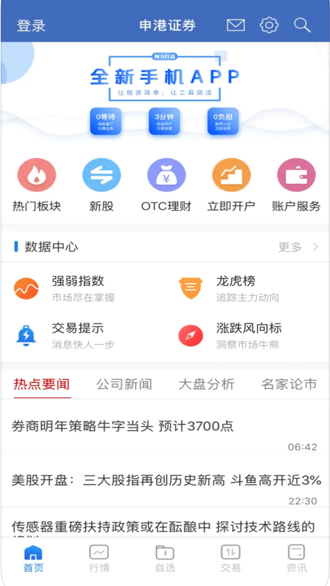 含行情、交易、开户及业务办理于一体的综合 app,交易佣金低至万 2.5。足不出户,理财投资需求全搞定!您的财富巨轮,从申港扬帆起航。
