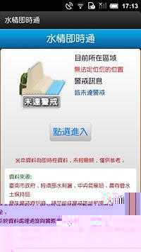 台南水情实时通,掌握灾资真轻松台南市政府版权所有台南水情实时通目前提供 5 大类服务,包括 1.警戒 淹水警戒,土石流警戒,河川水位警戒,区域排水警戒,水库泄洪警戒.2.水情 雨量信息,河川水位信息,区域排水信息,水库信息,潮汐信息.3.气象气象观测图,累积雨量图,雨量预报图.4.监控河川影像信息 5.讯息主动推播气象特报,水利,市府发布信息,让台南市民在灾前,灾中,灾后皆能接收实时信息,达到减灾离灾之目的.