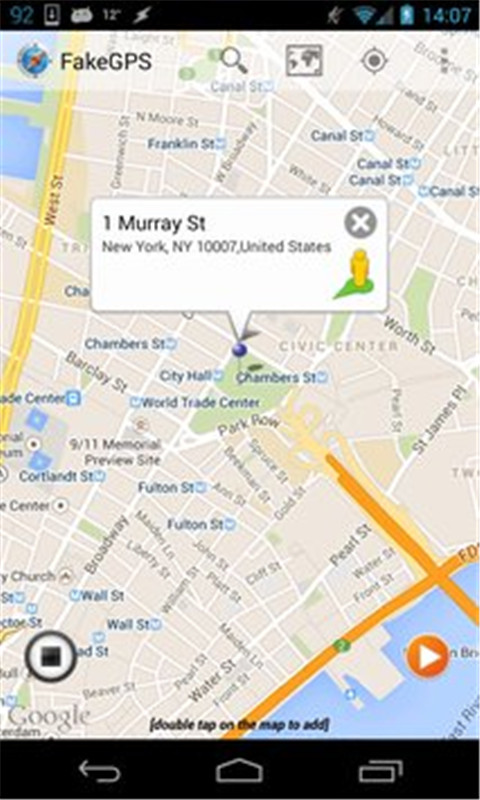 - Choose your faked location and press play and the app will insert the fake location into your android phone.