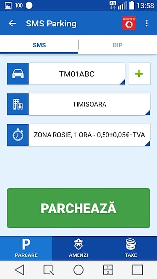 ➲ automatically send SMS with the plate number and the area parking code selected \\r