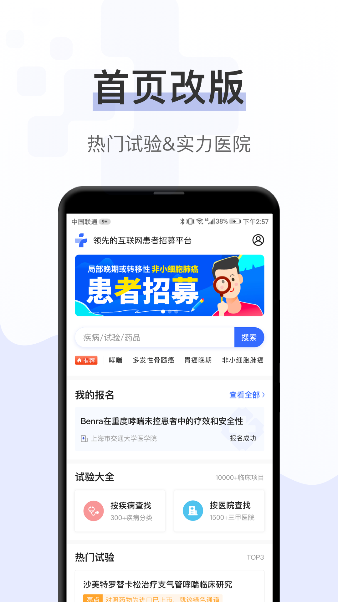 健康秘书是一款专业的临床试验搜索软件,帮助患者了解临床试验和参与临床试验,且具备一对一专属客服帮助匹配试验,为您的康复之路增砖添瓦。\\r