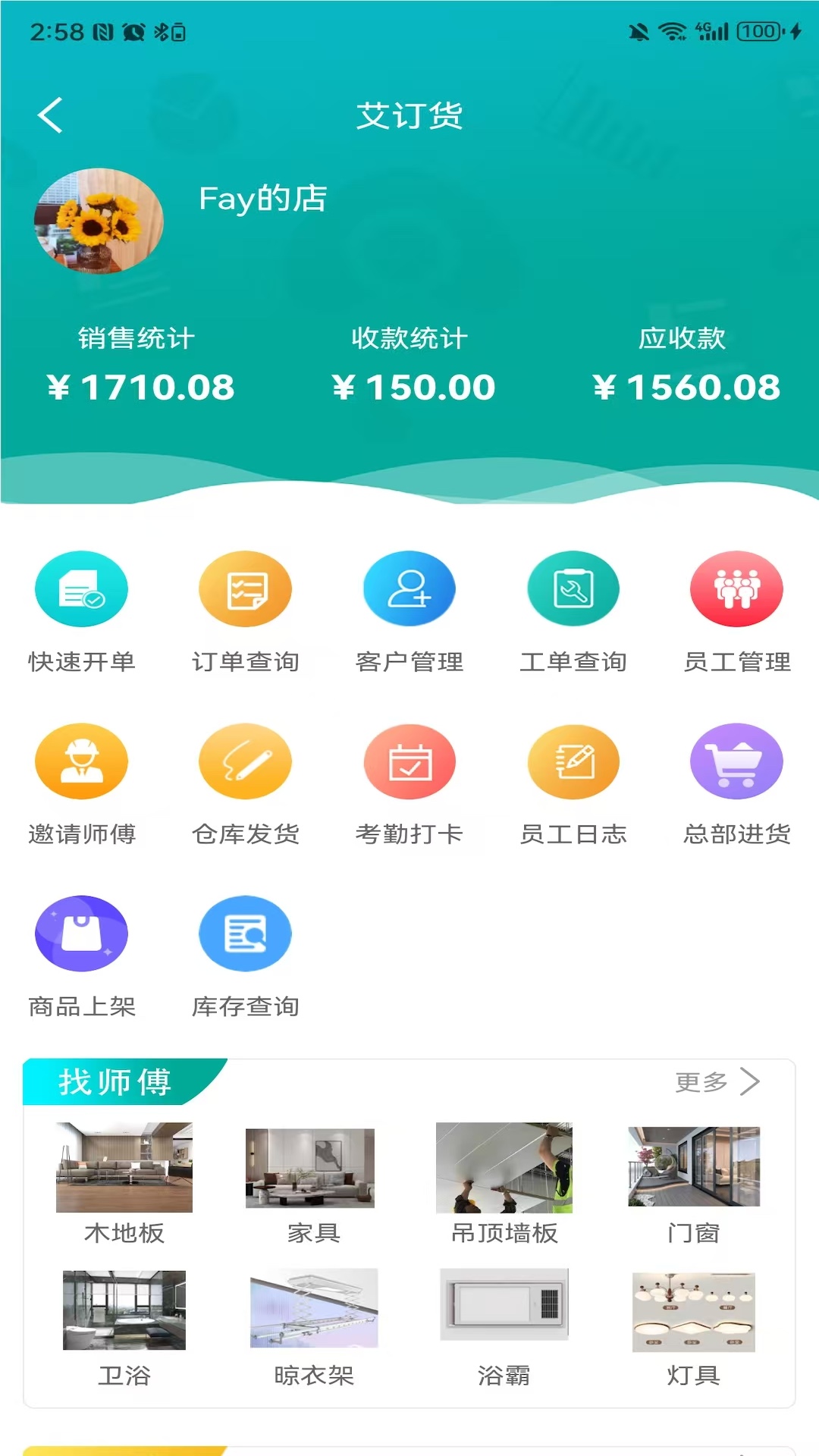 艾订货商家版,让客户穿起来让生意更好做。是一款终端店面导购联盟平台,解决了终端店面生意不好做,有了生意没法做,生意做了后续未还的痛点,新推出的系统界面操作简单,是终端店面老板,导购员,安装工的好帮手。