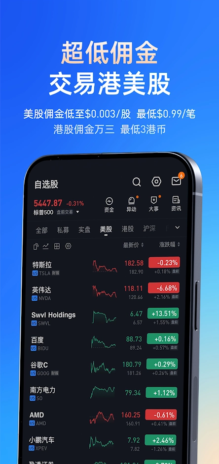 1. 美股佣金低至$0.003/股,最低$0.99/笔;港股佣金万三,最低 3 港币
