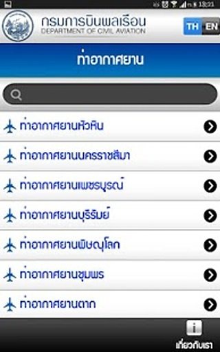 แอพพลิเคชัน นี้ช่วยอำนวยความสะดวกให้กับผู้มาใช้บริการท่าอากาศยานตรวจสอบข้อมูลตาราง การบินสำหรับท่าอากาศยานในสังกัดของกรมการบินพลเรือนได้ คุณสมบัติของโปรแกรม - ข้อมูลตารางการบินของทุกท่าอากาศยานของกรมการบินพลเรือน - ข้อมูลที่ตั้งท่าอากาศยาน - ข้อมูลการเดินทางไปยังสถานที่ต่างๆ - ข้อมูลสิ่งอำนวยความสะดวกภายในท่าอากาศยาน - สามารถเสนอแนะข้อมูลของท่าอากาศยานนั้นได้ - ข้อมูลเกี่ยวกับความเป็นมาของท่าอากาศยานแต่ละแห่ง Thai Flight Info is an official application provided by the Department of Civil Aviation, Thailand. Thai DCA would like to offer you the most convenient way to check your flight schedules of our airports on your mobile devices. This includes more than 25 domestics and international airports. What’s on Thai Flight Info application? - Allflight schedule of Department of Civil Aviation’s airports - Locations of Department of Civil Aviation’s airports (Google Map, Image Map) - Information on transportation for you to travel to places around each airport - Information on facilities of each airport. - Ways to send your suggestions to our airports - All Information about each airport such as history, location and many more
