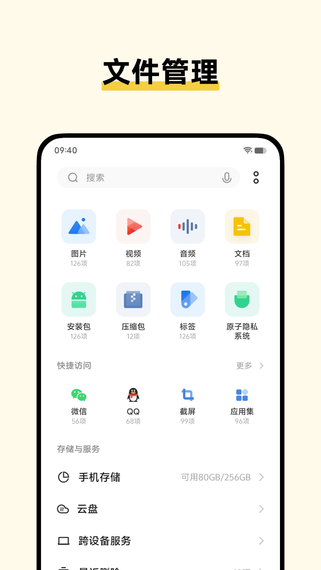 vivo 官方文件管理应用,为用户提供更方便、快捷、高效的文件组织、查找、搜索、浏览、整理、处理等服务。