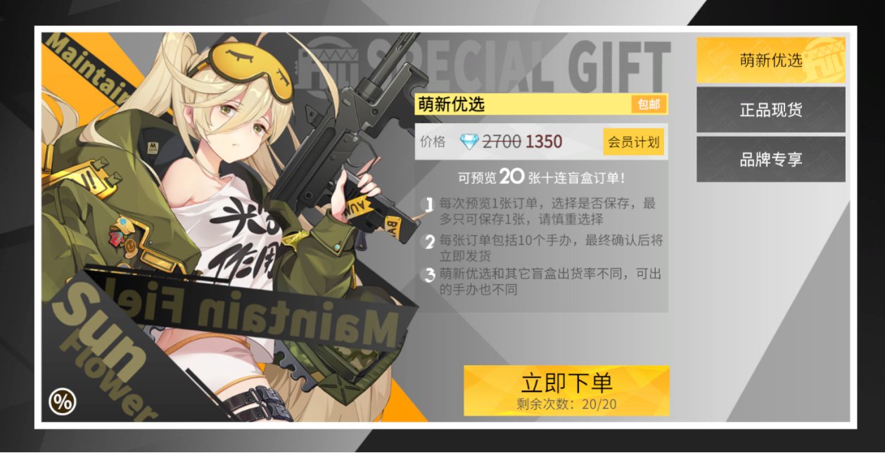 活动期间,只要通关主线剧情 1-4,主人们即能在商店解锁皮肤商店功能,在主人桌面界面点击右上角的商店入口,选择 1F 特别款 Ver,即可看到首批上架的 5 名手办的专属或独家皮肤!