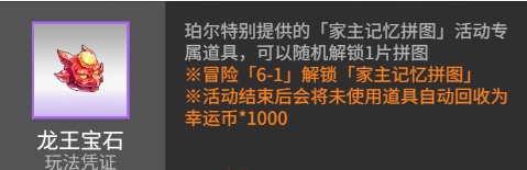 家主冒险拼图:使用【龙王宝石】开启家主冒险拼图,完成拼图领取极品奖励!