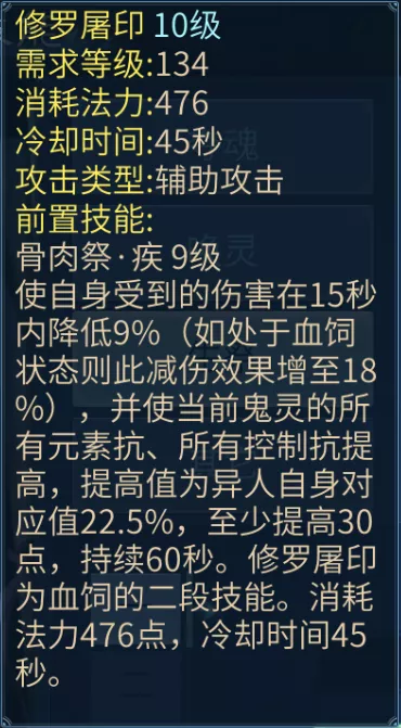 ▷这个调整感觉是减少血饲的负面效果,咱就可以更频繁的去使用血饲,如果在血饲状态下释放 125 技能修罗屠印减伤效果也会对应有所增加,鬼灵的抗性也会得到提升,也可以说是间接增强了 125 技能修罗屠印吧。